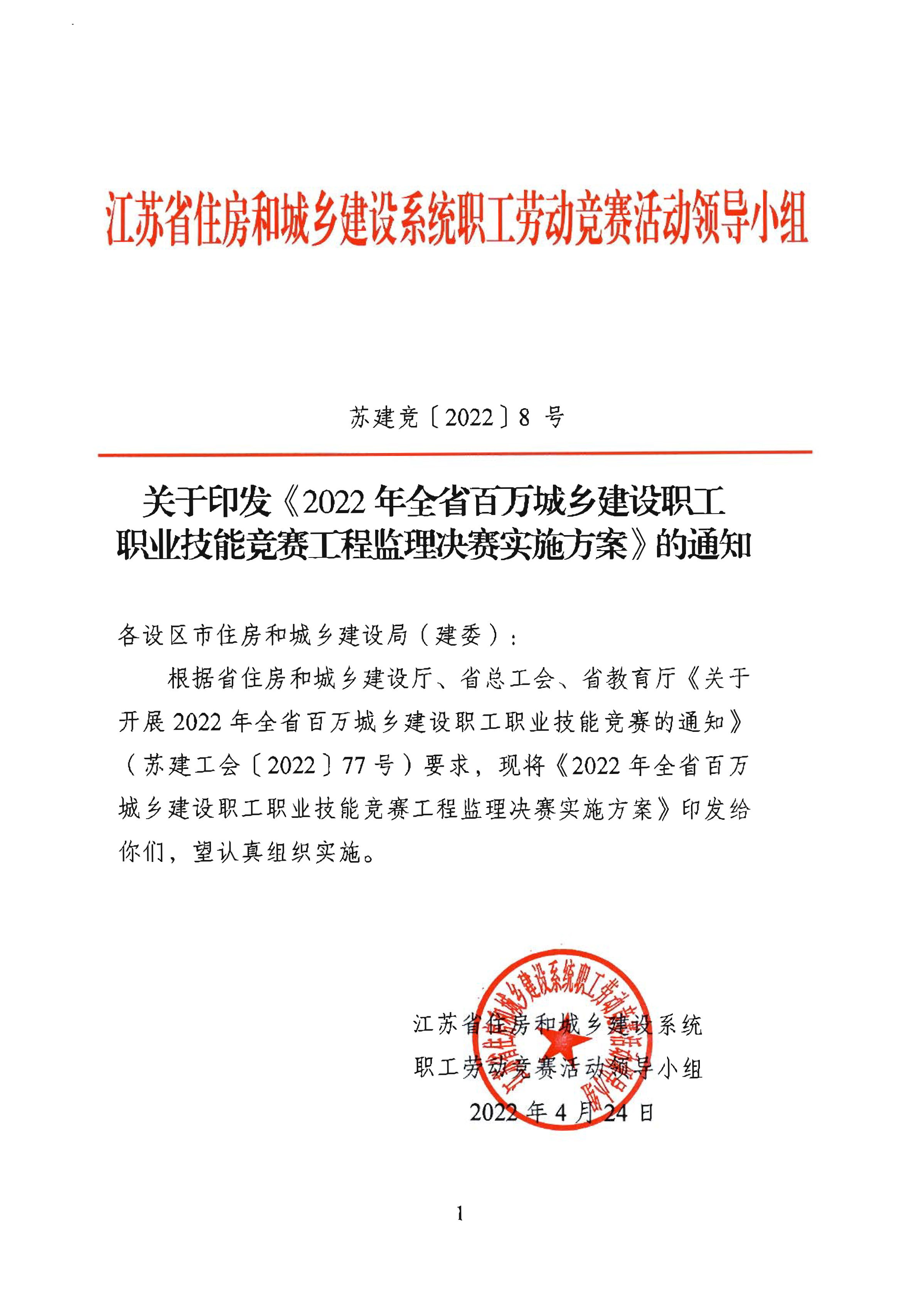 附件一:關(guān)于印發(fā)《2022年全省百萬城鄉(xiāng)建設(shè)職工職業(yè)技能競賽工程監(jiān)理決賽實施方案》的通知(蘇建競【2022】8號)
