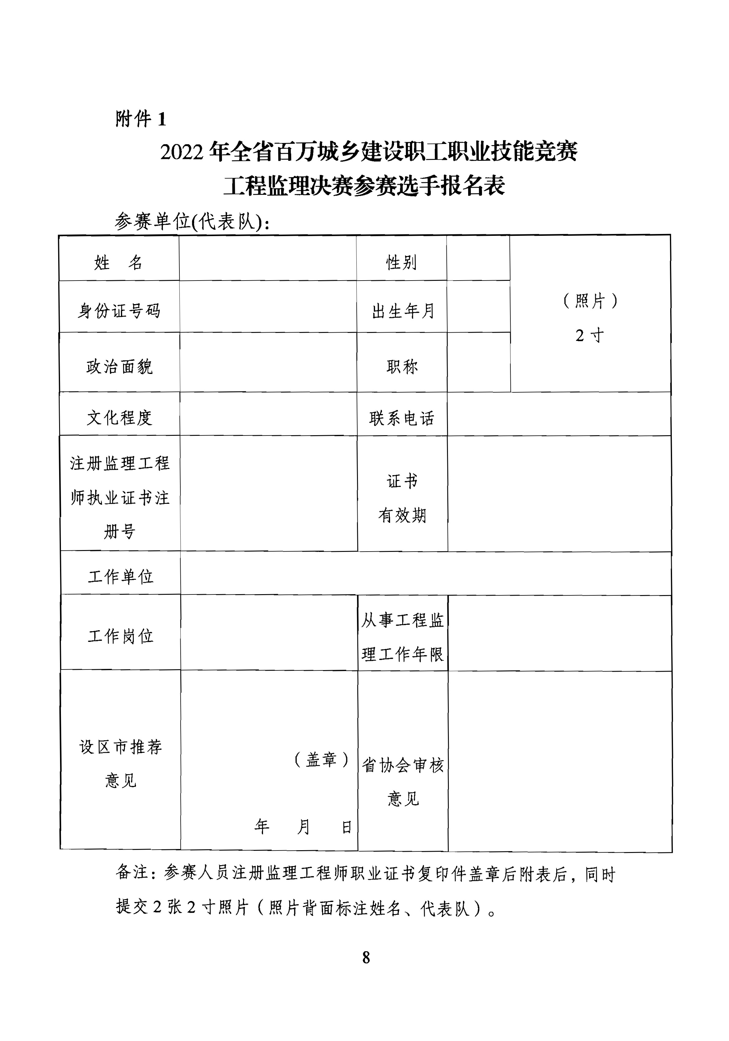 請參賽單位在2022年 5 月 31 日前將參賽選手匯總表(后附)電子稿及蓋章掃描件報至南京建設(shè)監(jiān)理協(xié)會。